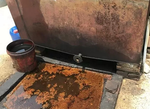圖7 5立方米左右的鐵皮箱內裝滿廢油。